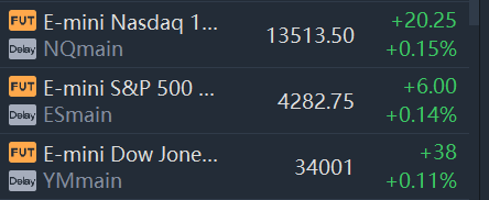 At 07:57 a.m. ET, Dow e-minis were up 38 points, or 0.11%, S&P 500 e-minis were up 6 points, or 0.14%, and Nasdaq 100 e-minis were up 20.25 points, or 0.15%.