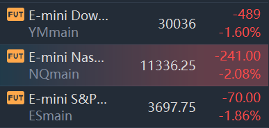 The decline of U.S. stock index futures widened, with Nasdaq 100 index futures down more than 2%, Dow futures down 1.6% and S&P 500 futures down 1.86%.