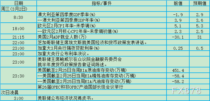 周三(3月2日)关键词:美国ADP、OPEC+会议、鲍威尔国会证词、Snowlake财报