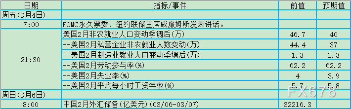 周五(3月4日)关键词:美国2月失业率、美国2月非农就业人口、美联储票委威廉姆斯讲话