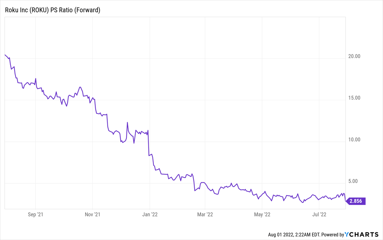 As you can see above, Roku went from being priced at north of 15x forward sales to now being priced at 3x forward sales.
