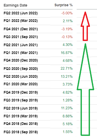 The days when Roku was handily beating analysts' revenue estimates are now long-distance memory, as you can see from the green arrow, above. As Warren Buffett says, there's never just one cockroach in the kitchen.