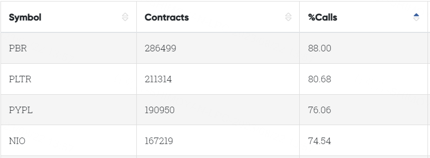 Special %Calls>70%: Petroleo Brasileiro; Palantir; PayPal; Nio