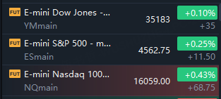 At 07:45 a.m. ET, Dow e-minis were up 35 points, or 0.1%, S&P 500 e-minis were up 11.5 points, or 0.25%, and Nasdaq 100 e-minis were up 68.75 points, or 0.43%.