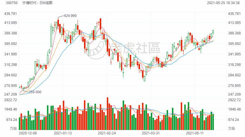 宁德时代董事长曾毓群对外透露,宁德时代将于2021年7月前后发布钠电池。5月24日,宁德时代股价上涨3.3%,今天继续收涨2%。