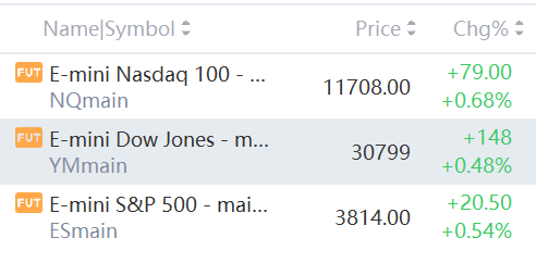 S&P 500 futures rose 0.54%; Nasdaq 100 futures climbed 0.68%.