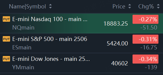 At 8:00 a.m. ET, Dow e-minis were down 139 points, or 0.34%, S&P 500 E-minis were down 16.75 points, or 0.31%, and Nasdaq 100 E-minis were down 51.5 points, or 0.27%.