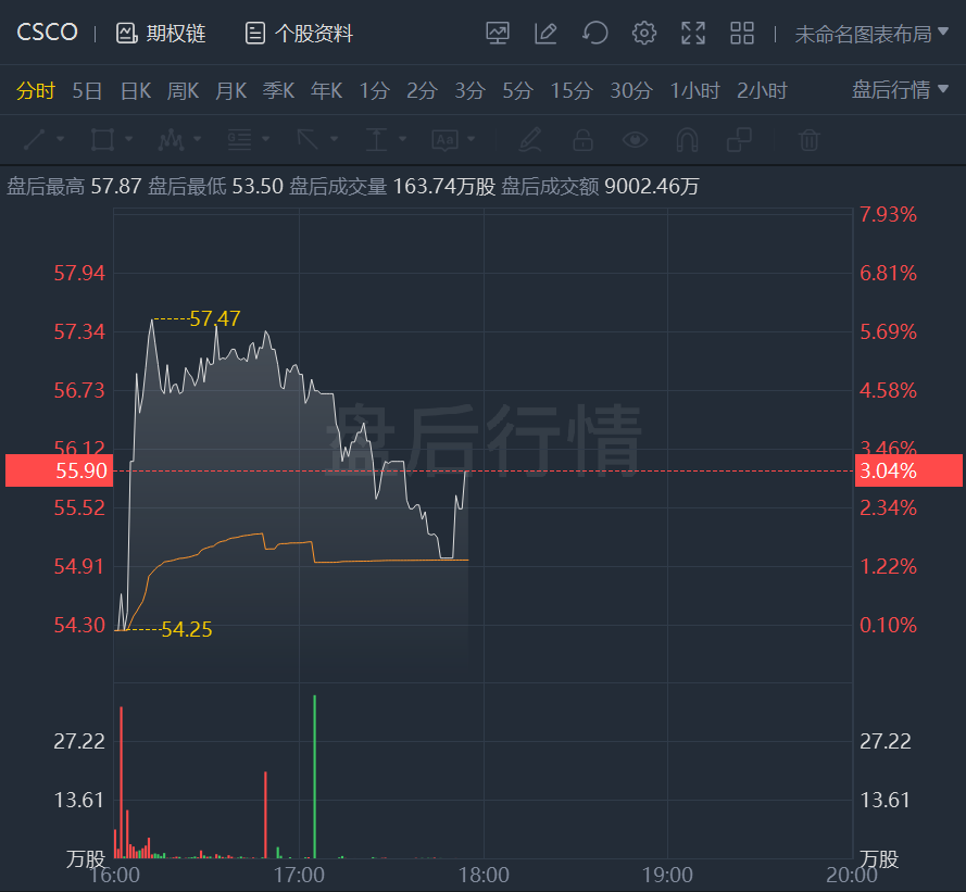 思科预计,2022财年第三财季该公司的营收将同比增长3%到5%,不按照美国通用会计准则的毛利润率为63.5%到64.5%,不按照美国通用会计准则的运营利润率为32.5%到33.5%,按照和不按照美国通用会计准则的有效备付所得税率分别将达18%和19%,不按照美国通用会计准则的每股收益为0.85美元到0.87美元,其平均值(0.86美元)符合预期。据雅虎财经频道提供的数据显示,19名分析师此前平均预期思科第三财季营收将达132.5亿美元,21名分析师此前平均预期思科第三财季每股收益将达0.86美元。