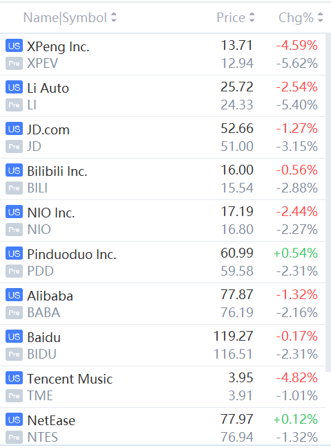 Hot Chinese ADRs Slid in Premarket Trading.