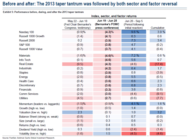 在历史上,2013年的“缩减恐慌”(taper tantrum)对市场造成了巨大的冲击——但相关影响只持续了非常短的时间。