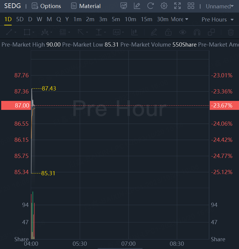 SolarEdge Technologies shares dropped 23.67% to $87 in premarket trading on Friday after preliminary third quarter revenue came in below prior guidance, with further pressure on revenue expected in the fourth quarter.