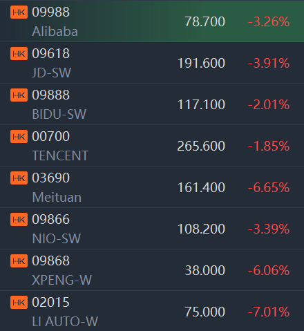 - Shares of Alibaba fell over 3% while Xpeng and Li Auto shares shed over 5%.