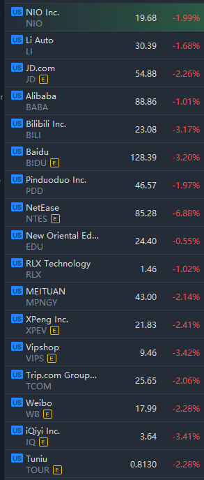 Hot Chinese ADRs slid in morning trading. Alibaba, Baidu, Bilibili, iQiyi, JD.com, Nio, Li Auto, Pinduoduo, Meituan and Xpeng fell between 1% and 6%.