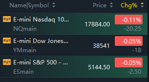 At 8:20 a.m. ET, S&P 500 futures edged down by 0.05% while Nasdaq 100 futures lost 0.1%. Dow Jones Industrial Average futures were little changed.