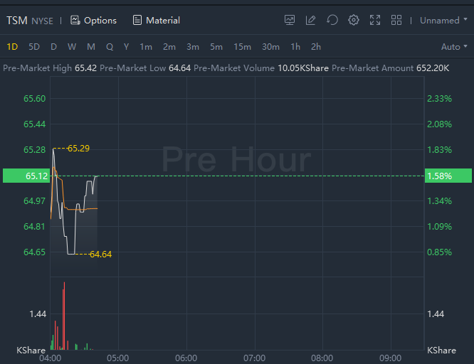 Taiwan Semiconductor Manufacturing rose nearly 2% in premarket trading after posting its financial result.