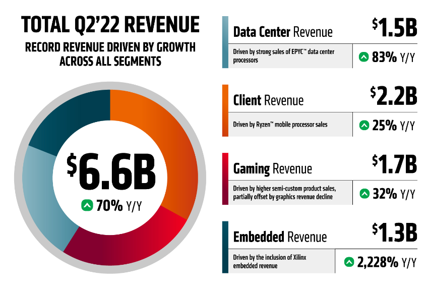 - As opposed to previous quarters, AMD did not beat its own guidance for Q2’22 revenues.