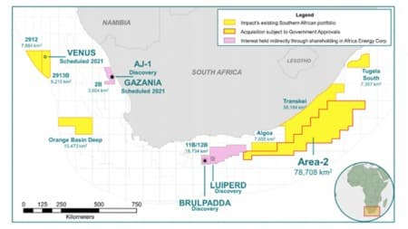 Venus is arguably the most closely followed new frontier wildcat, expected to be spudded in Q3 2021 by the French major Total. The actual drilling in Namibia’s offshore waters (Orange Sub-Basin, Block 2913B) might have happened earlier but apparently Total prioritized its drilling commitments in Angola, namely the Ondjaba-1 well using the Maersk Voyager ultra-deepwater drillship. The geological specificities of the Venus prospect force an analogy with Brazil’s ultra-deepwater, although the Namibian prospect lies in water depths of 2.5-3km, i.e. much deeper than Brazil’s Campos Basin. The operator Total holds a 40% interest in the block, teamed up by Qatar Petroleum (30%), Impact (20%) and NAMCOR (10%). Preliminary estimates of recoverable oil reserves vary between 1.5-2 Bbbls, if the drilling of Venus-1 turns out to be commercial it will inevitably bring about the emergence of another offshore oil frontier in Southern Africa following Total’s Brulpadda discovery.