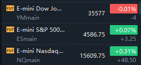 At 08:20 a.m. ET, Dow e-minis were down 4 points, or 0.01%, S&P 500 e-minis were up 3.25 points, or 0.07%, and Nasdaq 100 e-minis were up 48.5 points, or 0.31%.