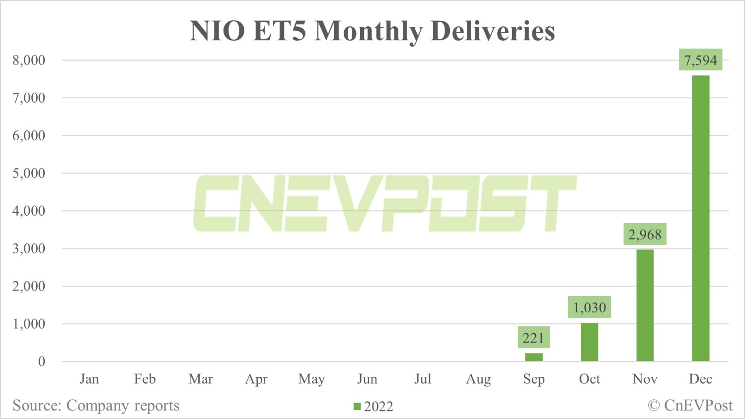 NIO delivered a record15,815 vehicles in December, of which the ET5 was 7,594, contributing 48 percent of deliveries.