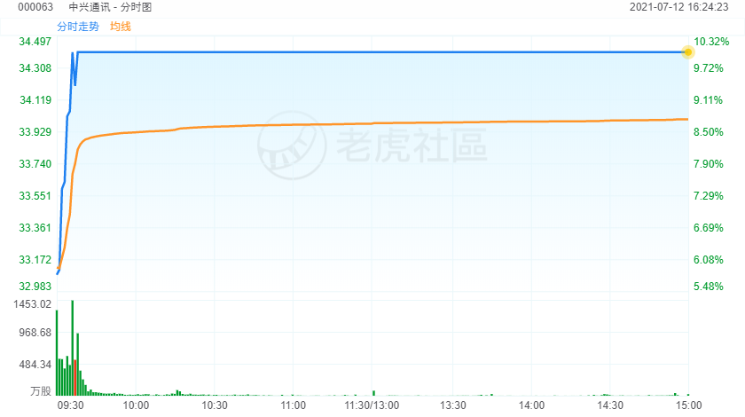 中兴通讯涨超13%,7月9日晚,中兴通讯发布2021年半年度业绩预告,预计上半年实现归属于上市公司普通股股东的净利润38.0亿元至43.0亿元,同比增长104.60%至131.52%,基本每股收益0.82元至0.93元。