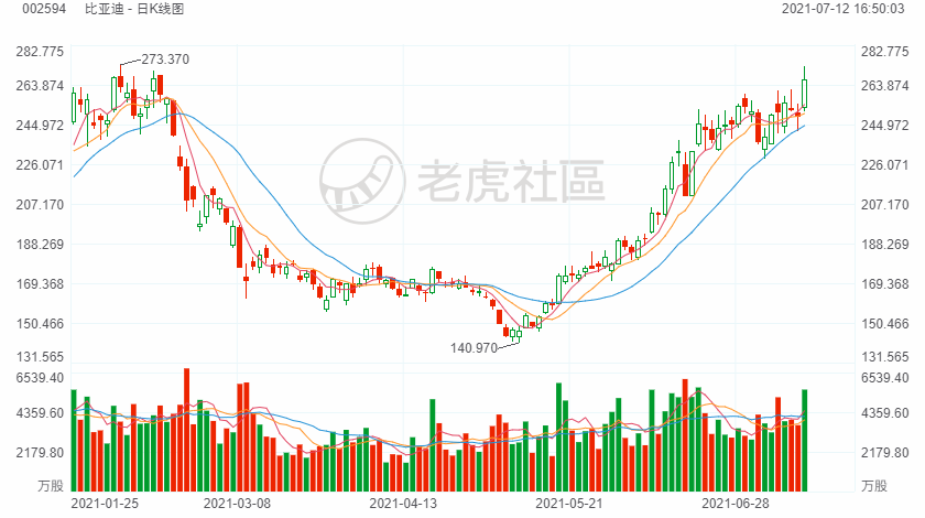 而新能源汽车巨头比亚迪高开高走,盘中一度上涨9.68%,逼近涨停,同时逼近历史高点。