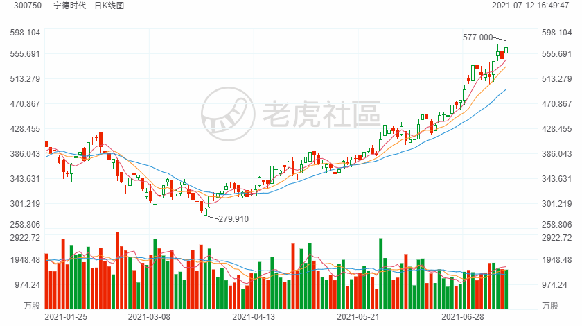 创业板一哥,新能源龙头宁德时代今天大涨超3%,盘中摸高至577元,创历史新高!