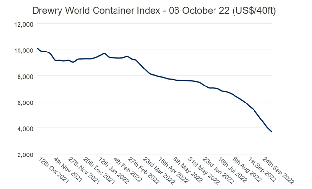 - Its profitability is less competitive than other peers. And I see inflation and supply chain pressures keep challenging its operating environment in the second half of 2022. In particular, the cost of fuel should lead operating expenses to increase during the remainder of the year. At the same time, the picture for overseas container costs remains mixed.