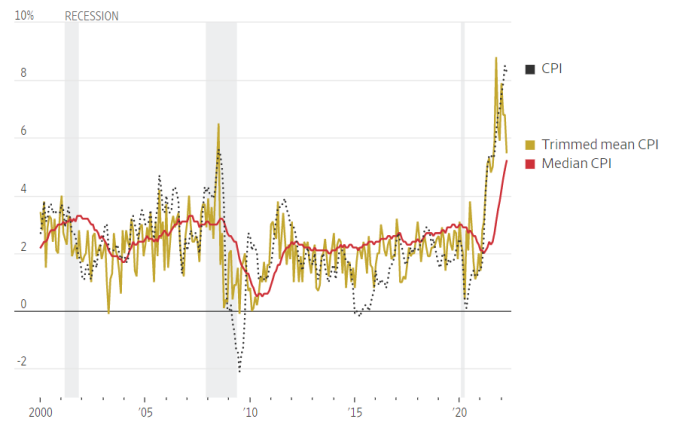 油价或食品价格上涨的这些短期因素,不能反映经济中整体的价格压力。但经济学家们已经研究出能识别整体经济通胀的数据。美国银行Global Research高级美国经济学家Alex Lin建议关注克利夫兰联储16%的截尾平均CPI(16% trimmed-mean CPI),该通胀指标剔除了最极端的价格变动,留下了中间大部分的价格变动,这些数据能更好地解释通胀如何形成的。