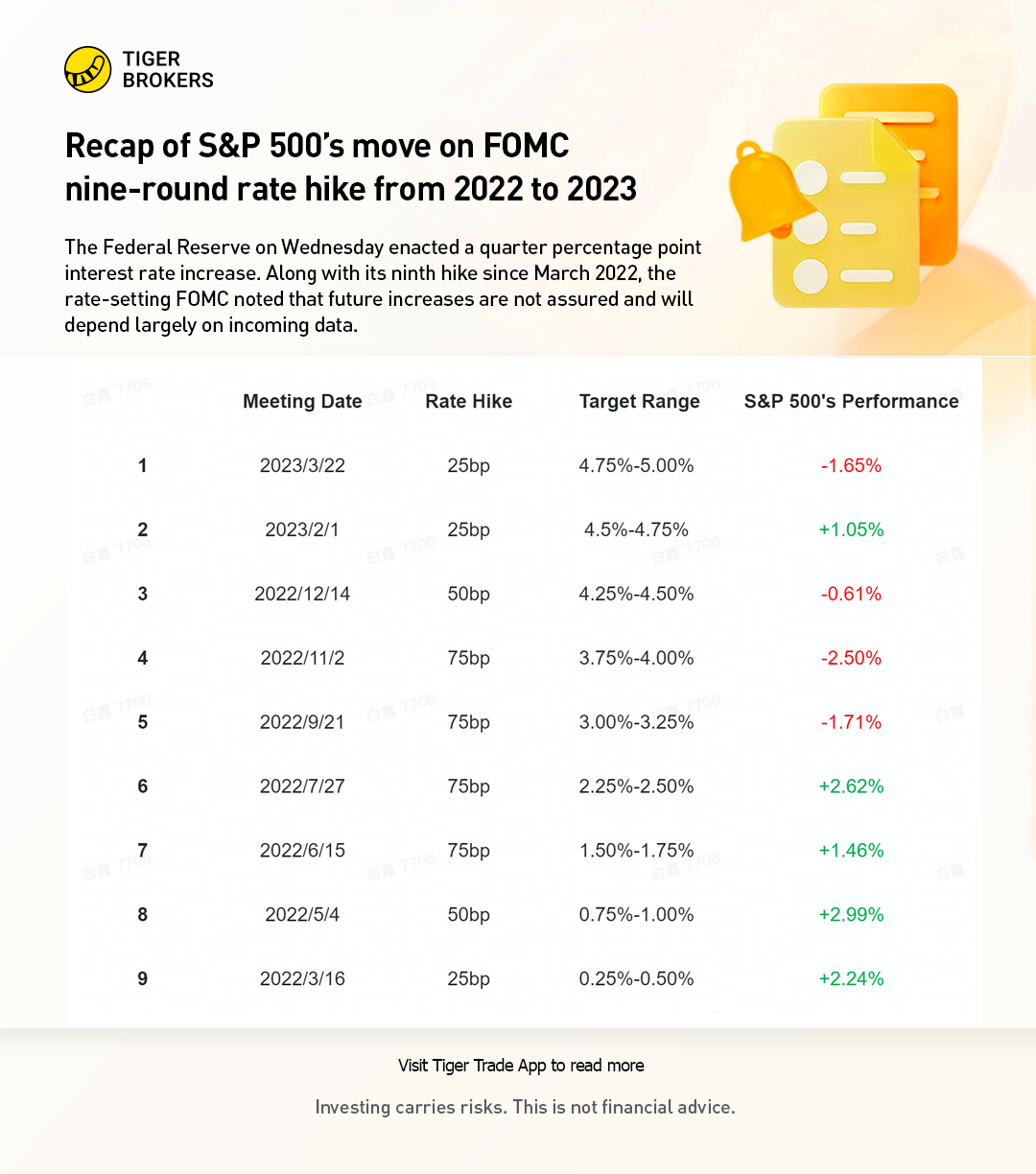 The Federal Reserve on Wednesday enacted a quarter percentage point interest rate increase. Along with its ninth hike since March 2022, the rate-setting FOMC noted that future increases are not assured and will depend largely on incoming data.