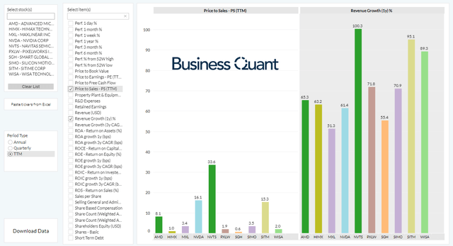 There's no denying that Nvidia is a rapidly growing company and a technology leader in its space. However, the stock is trading at a significantly higher Price-to-Sales (or P/S) multiple when compared to some of the other rapidly-growing semiconductor companies, suggesting that this might not yet be the ideal time for bottom-fishing.
