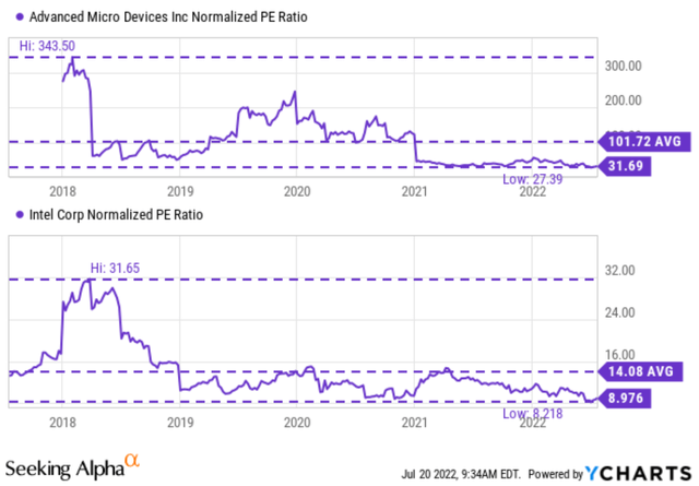- First, I foresee the current downturn stage to last into late 2022 or early 2023 for Intel and AMD as well. And I have seen signs of their valuation reaching bottoms already.