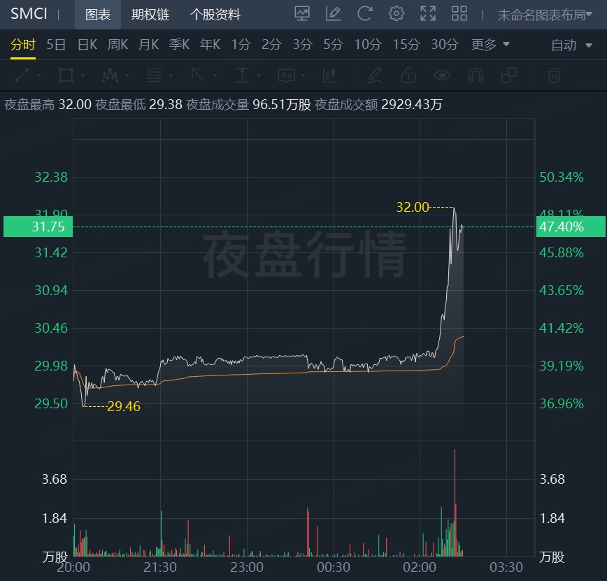 11月19日,超微电脑夜盘涨幅扩大至近50%!此前该公司宣布任命BDO USA为独立审计师并向纳斯达克提交合规计划。