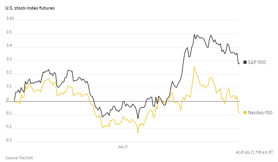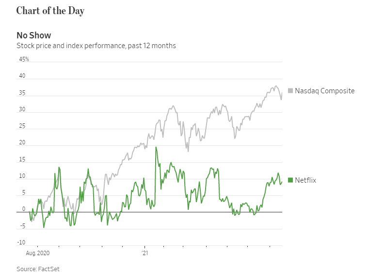 • NetflixNFLX-0.23%edged down 0.5% premarket after it said it added1.5 million membershipsin the second quarter, reflecting slower growth in new subscribers following a surge last year at the height of the pandemic.