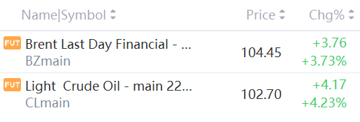 Crude oil futures surged wtih WTI oil futures up 4.23%, Brent crude futures dup 3.73%.