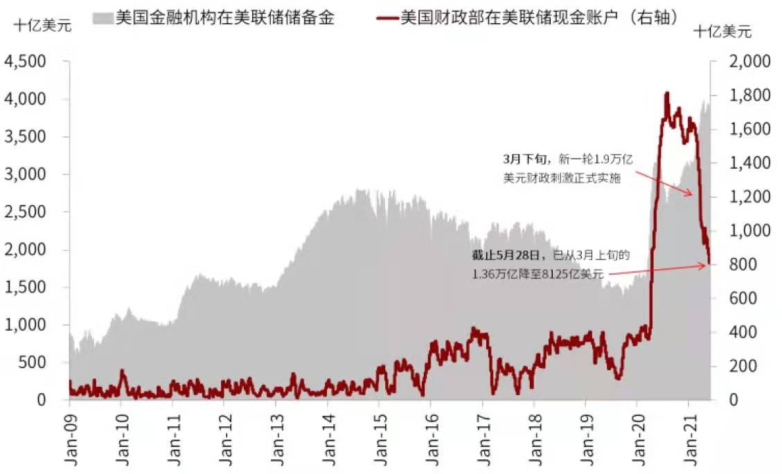 不过TGA的下降可能是短暂的,随着债务限额通过后,预计TGA将大幅反弹至8000亿美元左右(或更高)储备程度。加之7月美联储很可能首次提及Taper,财政、货币流动性拐点的共振可能会对大类资产带来较大的影响。