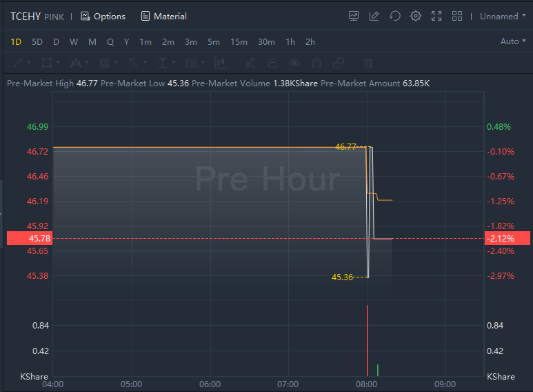 Tencent slid over 2% in premarket trading as its Q1 revenue missed estimates.