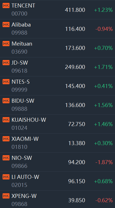 Tencent Holdings jumped 1.2 per cent to HK$411.80, Baidu gained 1.6 per cent to HK$136.6 and Trip.com rose 0.5 per cent to HK$312.2. Developer Longfor rose 2 per cent to HK$27.60 while sportswear manufacturer Li Ning gained 1.2 per cent to HK$80.70.