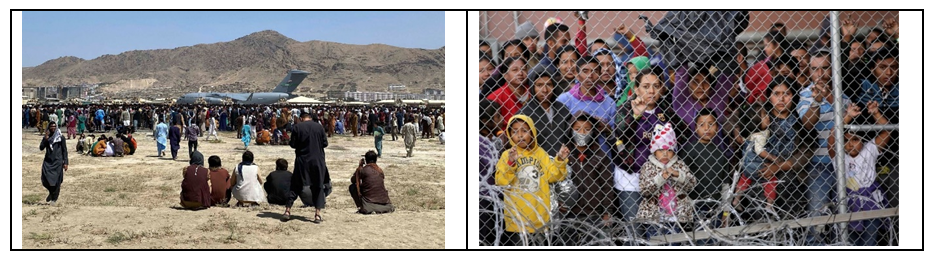 火速撤离阿富汗,是一种快刀斩乱麻的做法,但这对男女朋友分手后却没有删除彼此的联系方式——Kabul机场。现在Kabul机场有无数阿富汗人,要求美军将其带离阿富汗。这个情景,和川普/拜登上任的时候,美国边境上无数中美洲移民强烈要求进入美国毫无区别。对于阿富汗人来说,Kabul机场和美国军机,就是进入美国的最后一道坎,和美国边境无异。下图是Kabul机场和美国边境的情景。