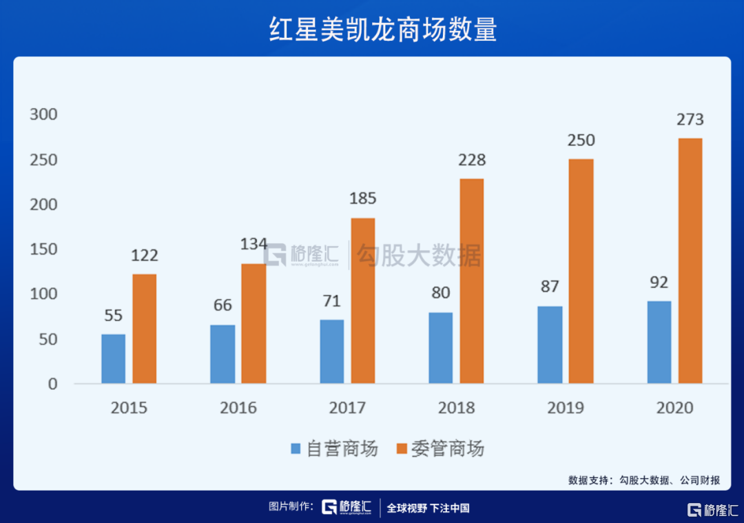 公司通过自营商场抢占优质地段打造区位优势,再通过委管商场轻资产运营实现更快的扩张及下沉。截至2020年12月31日,公司拥有92家自营商场(其中58家为自有物业),主要分布在一二线城市的优质地段,经营收入稳定。公司拥有273家委管商场,主要分布在三线及其他城市。此外,公司还通过战略合作经营12家家居商场,以特许经营方式授权开业66家特许经营家居建材项目,共包括476家家居建材店。
