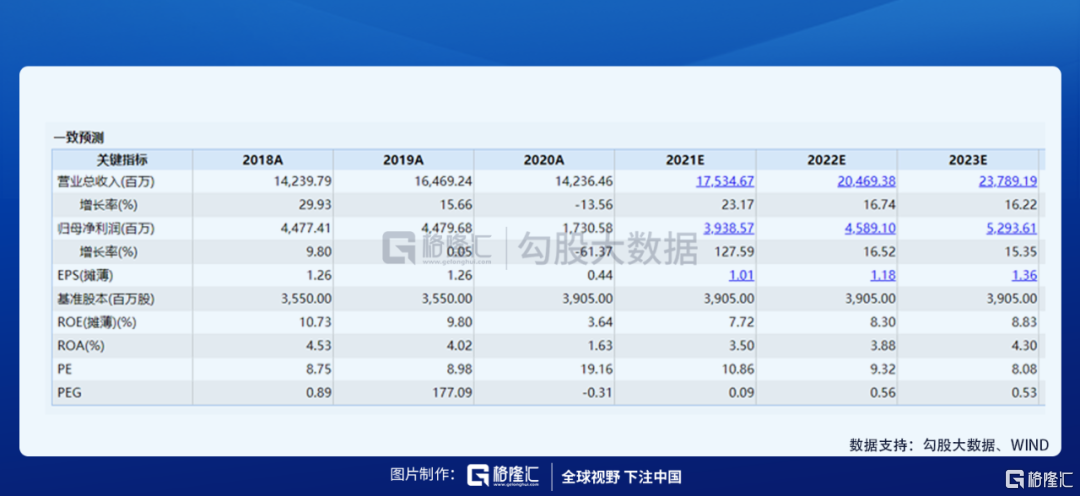 未来看,根据券商的一致预期,当前市值对应2021年、2022年、2023年分别是10.86倍、9.32倍和8.08倍。从公司一季度经营情况看,券商对今年的预期可能偏低。