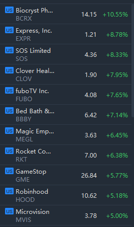 Meme stocks rallied in morning trading, with Biocryst Pharmaceuticals jumping over 10% and Express, Inc. jumping over 8%.