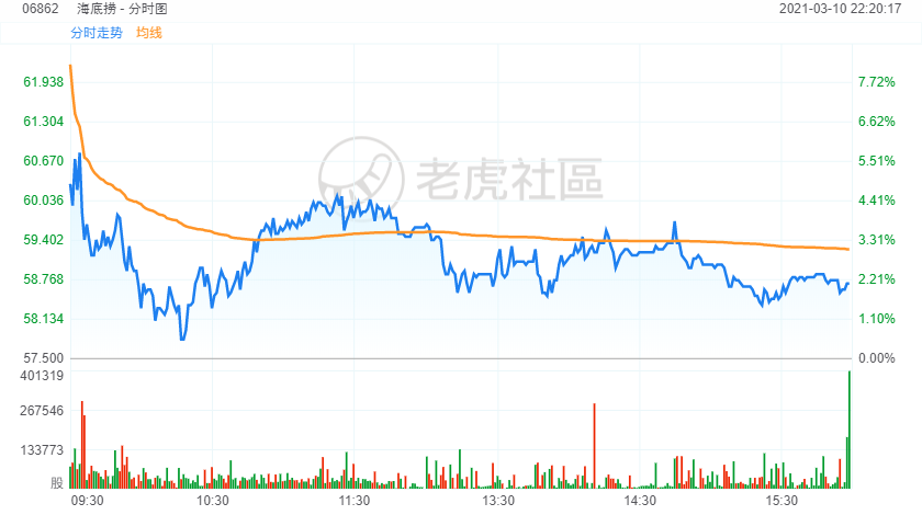 连续暴跌5个交易日后,海底捞股价终于开始反弹。今日收盘,恒指涨0.47%,海底捞涨2.09%,盘中一度涨逾8%。此前的6个交易日内,海底捞累计下跌逾16%。