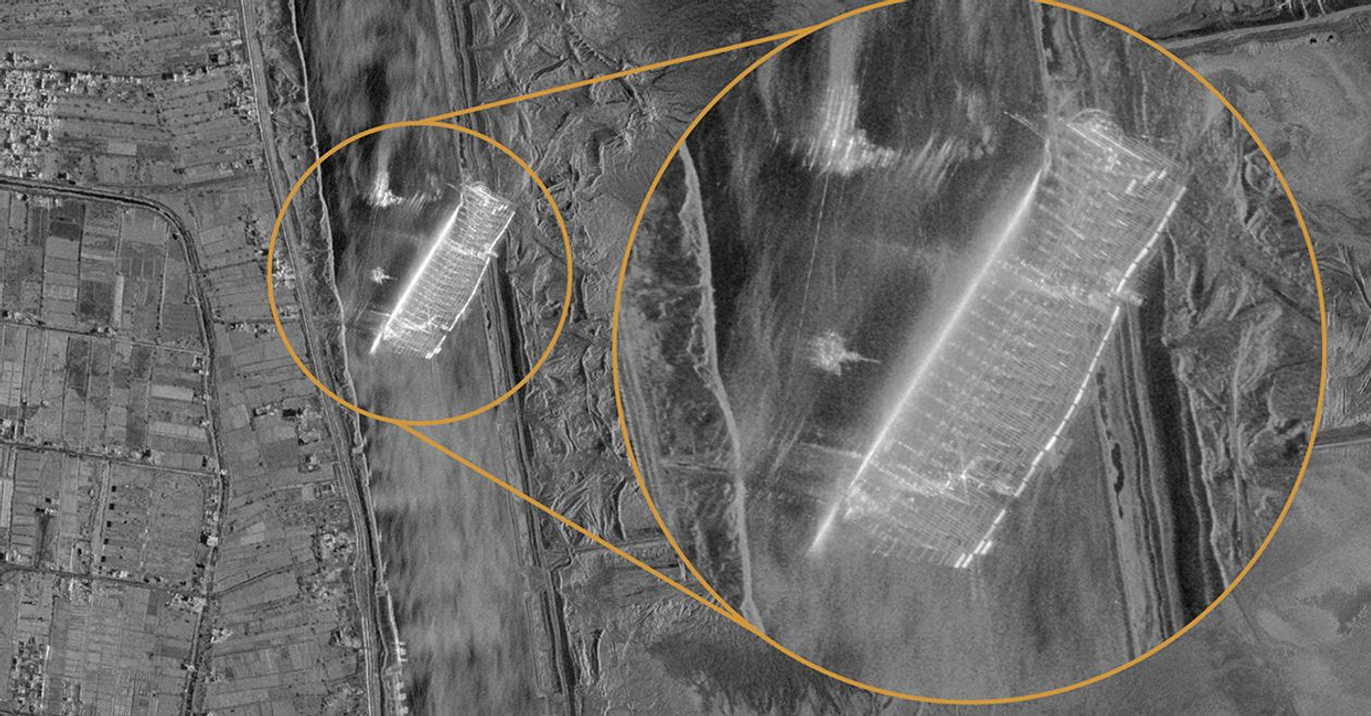 High-resolution satellite image from Capella Space of the container ship blocking the Suez Canal, March 24 at 9:36 a.m. local Egyptian time.