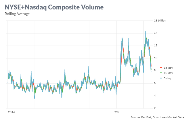 Market observers point to all manner of weird quirks that seem to confirm something is askew. Among other things, trading volumes have plunged to start 2021.