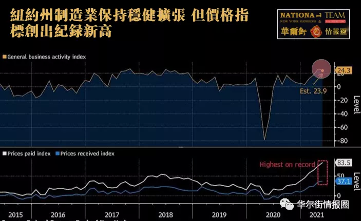 1)支付价格指数升8.8点至83.5,为自2001年有数据以来的最高点。收取价格指数攀升2.2点至37.1,也创下新高。(企业为原材料支付了更高价格,同时也收取了更高价格)