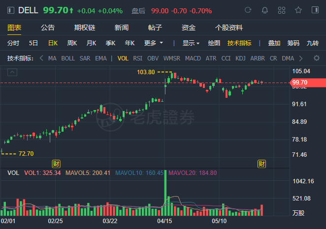 Dell $(DELL)$ reported first-quarter earnings of $938 million, or $1.13 a share, on sales of $24.49 billion, up from revenue of $21.95 billion a year ago. After adjusting for share-based compensation and other effects, the company reported earnings of $2.13 a share, up from $1.34 a share last year. Analysts on average expected adjusted earnings of $1.60 a share on sales of $23.4 billion, according to FactSet.
