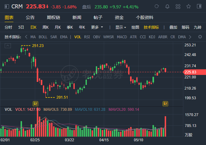Salesforce $(CRM.AU)$ shares rose 4.41% after hours, following a 1.7% decline in the regular session to close at $225.83.