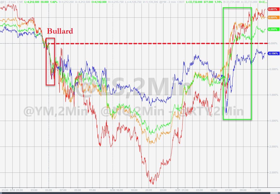 美国三大股指自6月11日以来首次集体收涨,标普500收涨1.4%,创4月5日以来最大涨幅,道指收涨1.76%,创3月5日以来最大涨幅,纳指收涨0.79%。
