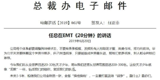 借用任正非的话,这是一场战争,而且,“一定要打赢”。换言之,华为面临的不是寻常的商业性人才竞争,而是关系到存亡的决战。华为与其他企业的区别只在于,决战提前到来了。