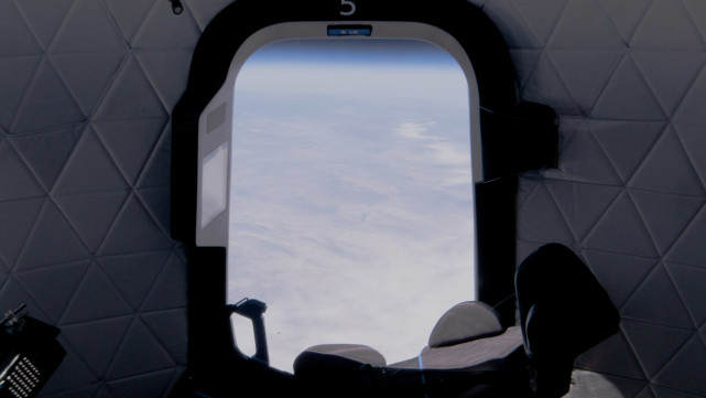 透过蓝色起源太空舱巨大舷窗所看到的景色